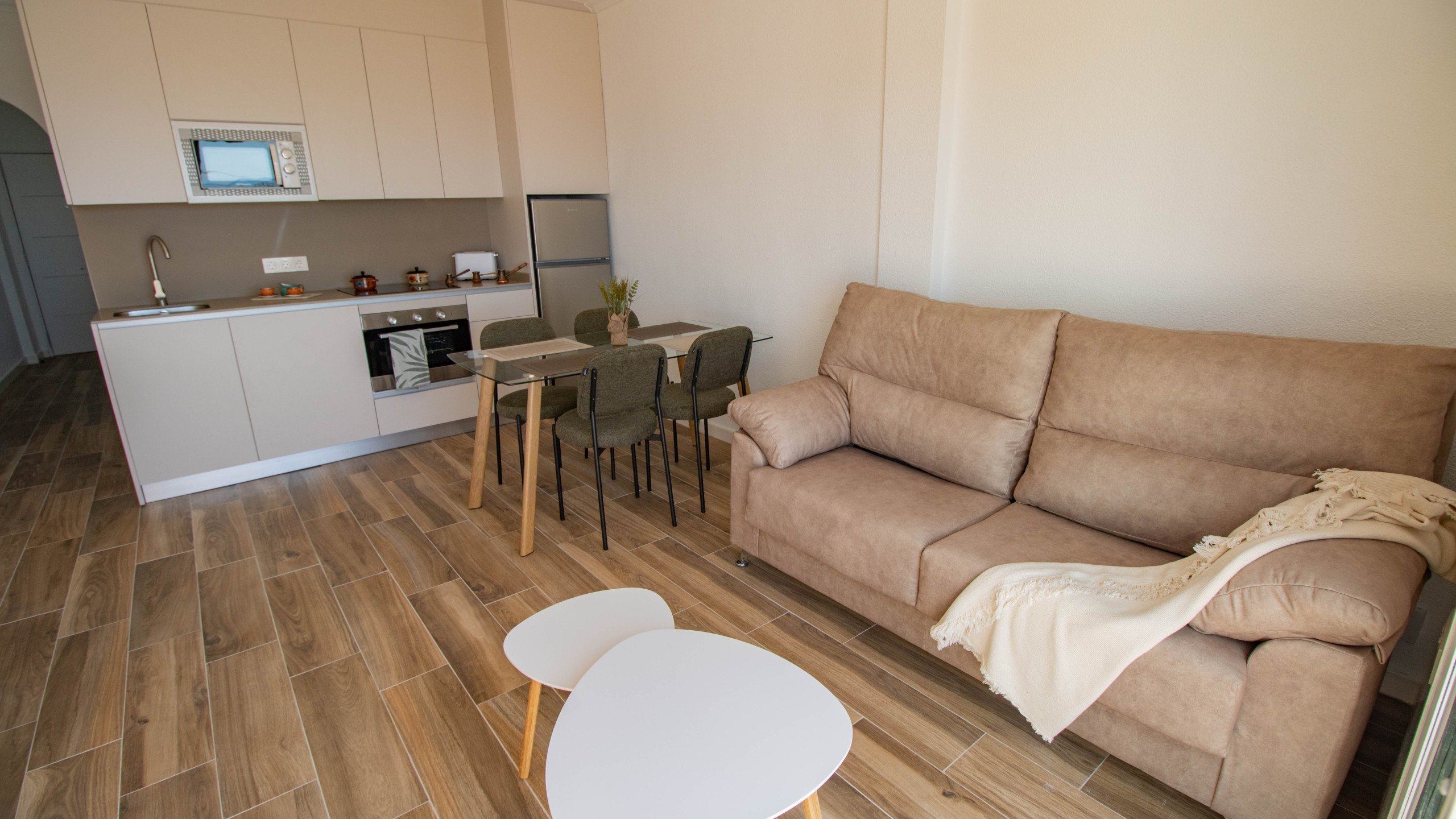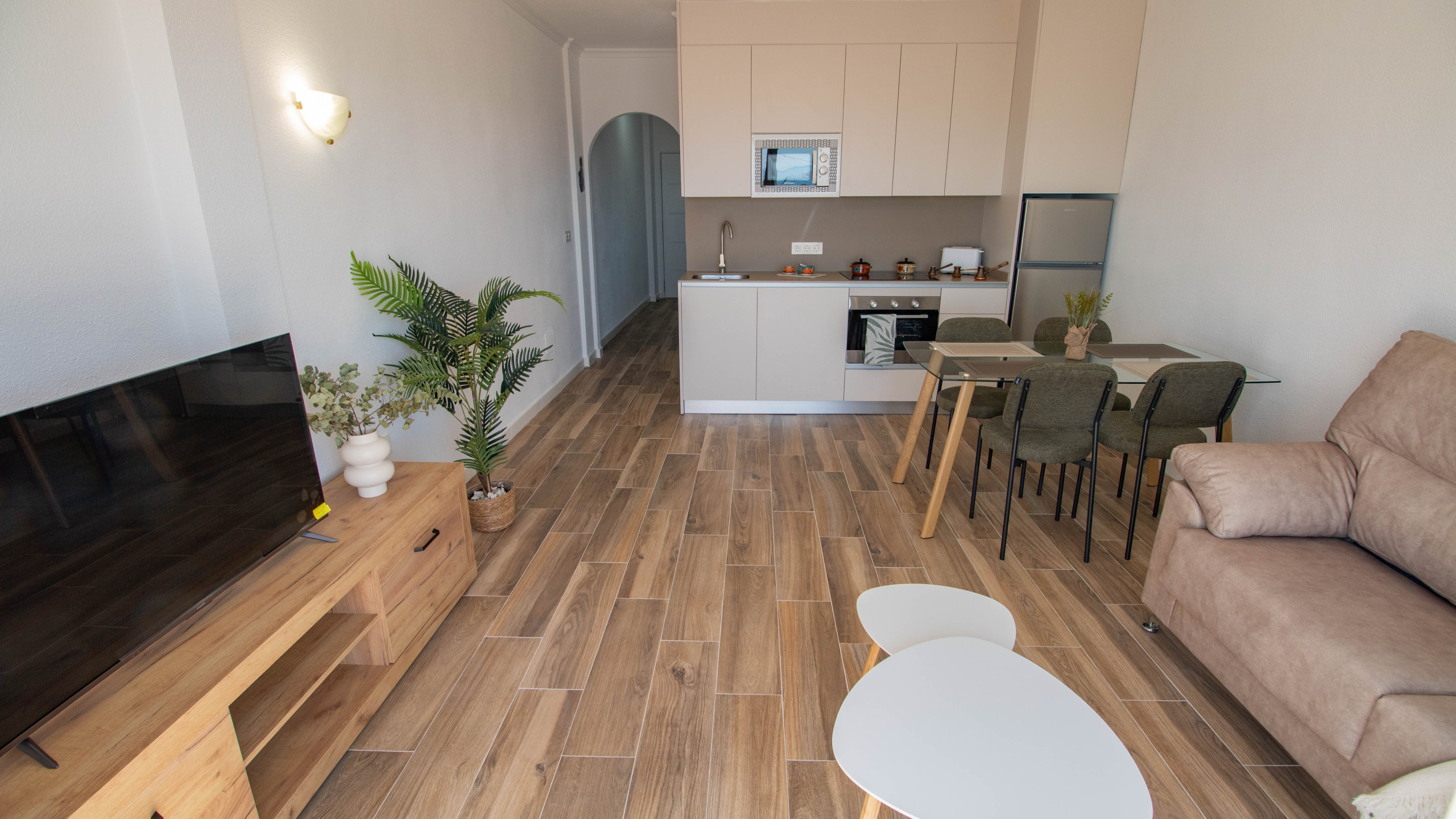 De woning beschikt over een slaapkamer, een volledig badkamer, een open keuken en een lichte woon-eetkamer, allemaal gerenoveerd om een moderne, comfortabele en functionele ruimte te bieden.