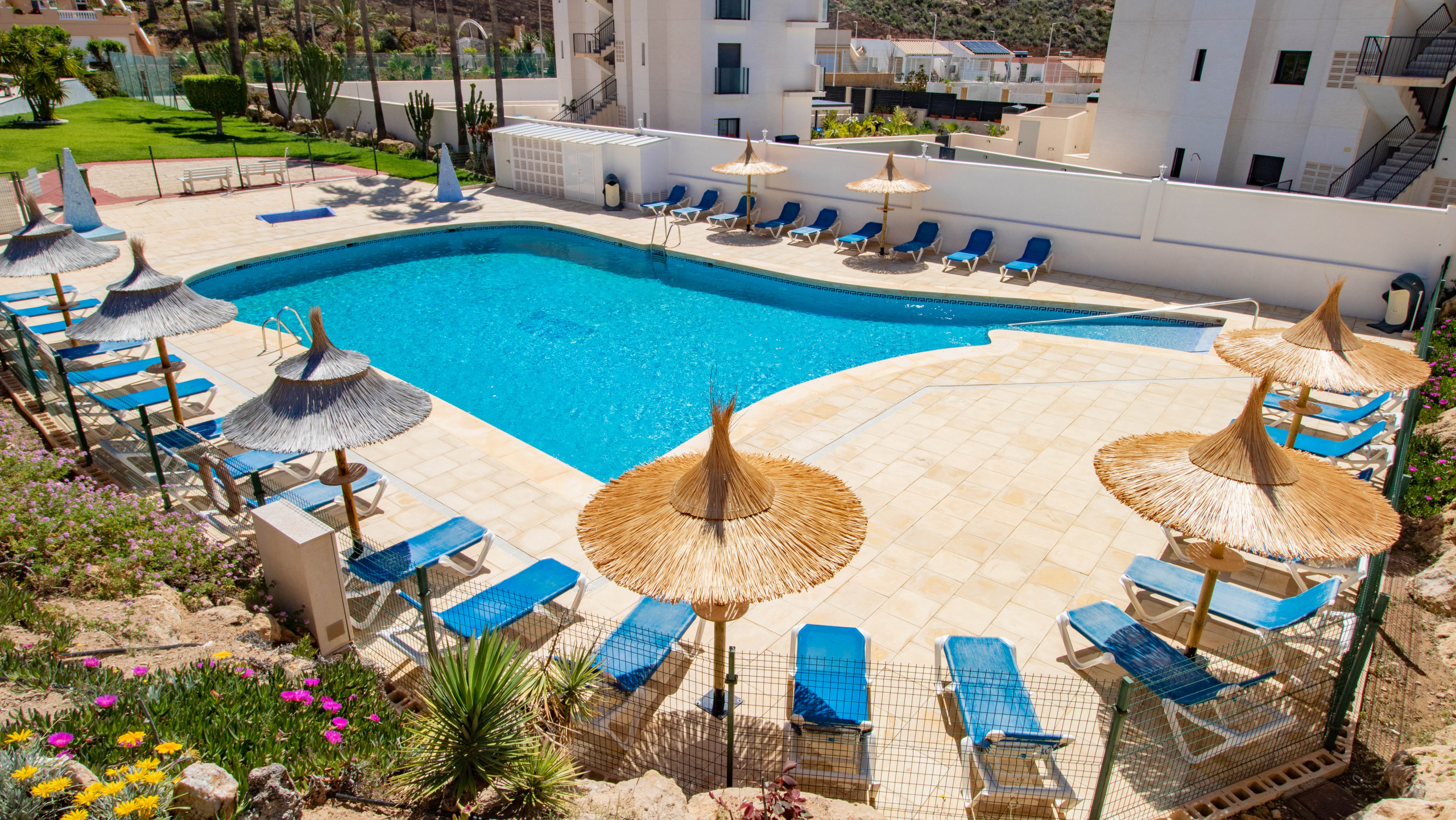 Disfruta de unas vacaciones cómodas y relajantes en este amplio apartamento vacacional situado en la urbanización Beverly Hills, en San Juan de los Terreros (Almería), una zona tranquila y bien cuidada, ideal para familias y grupos.