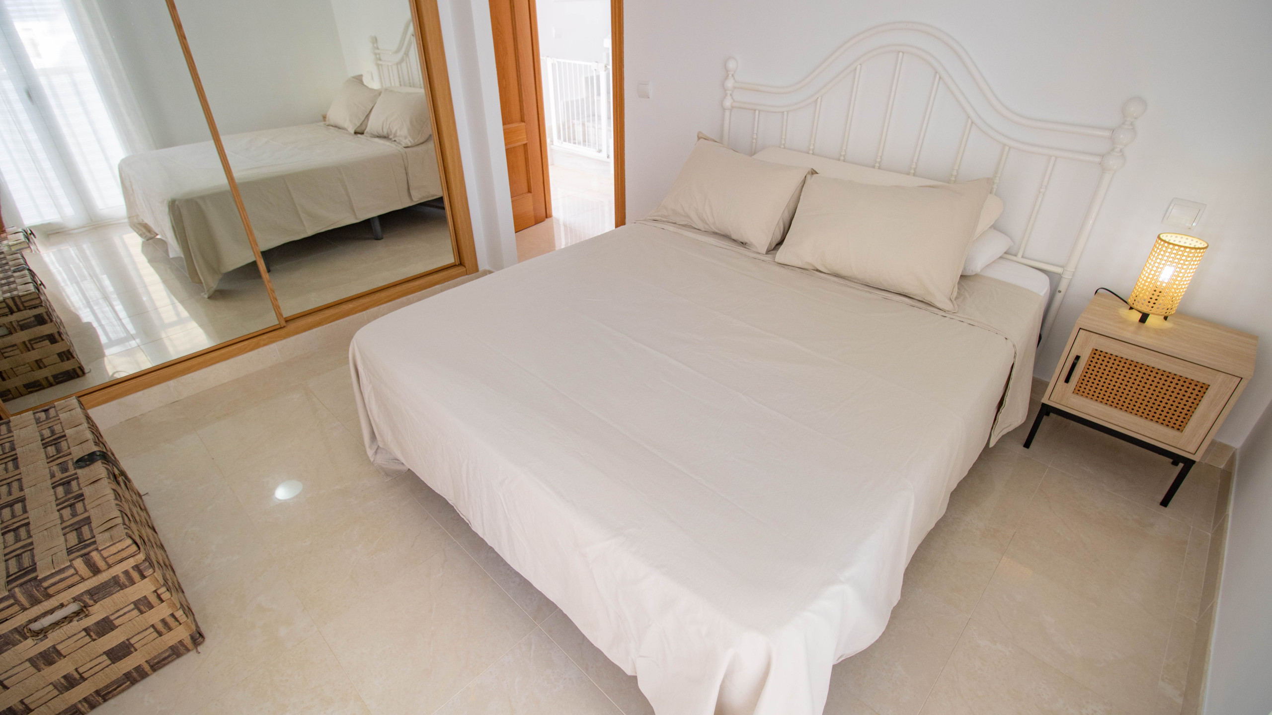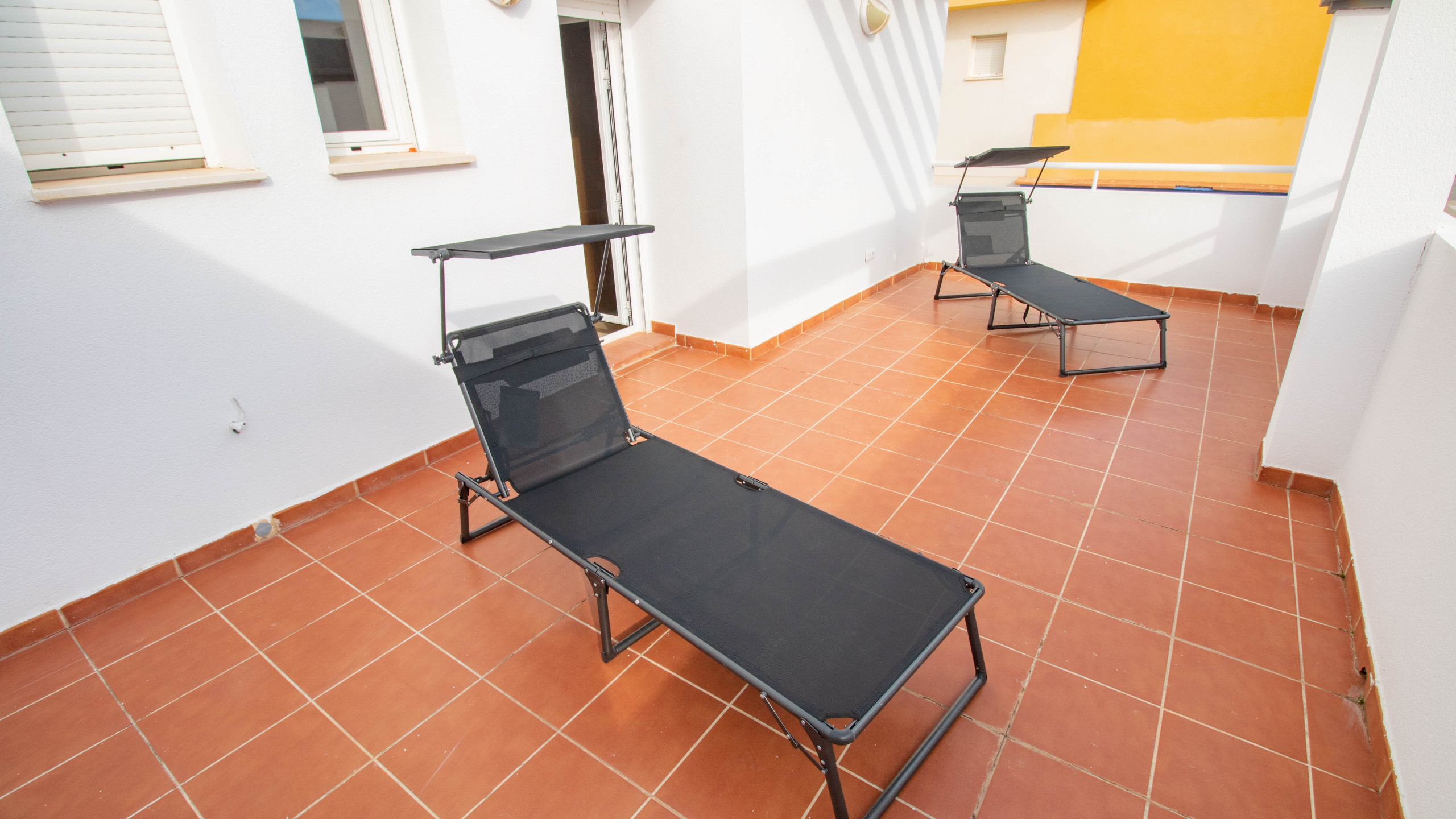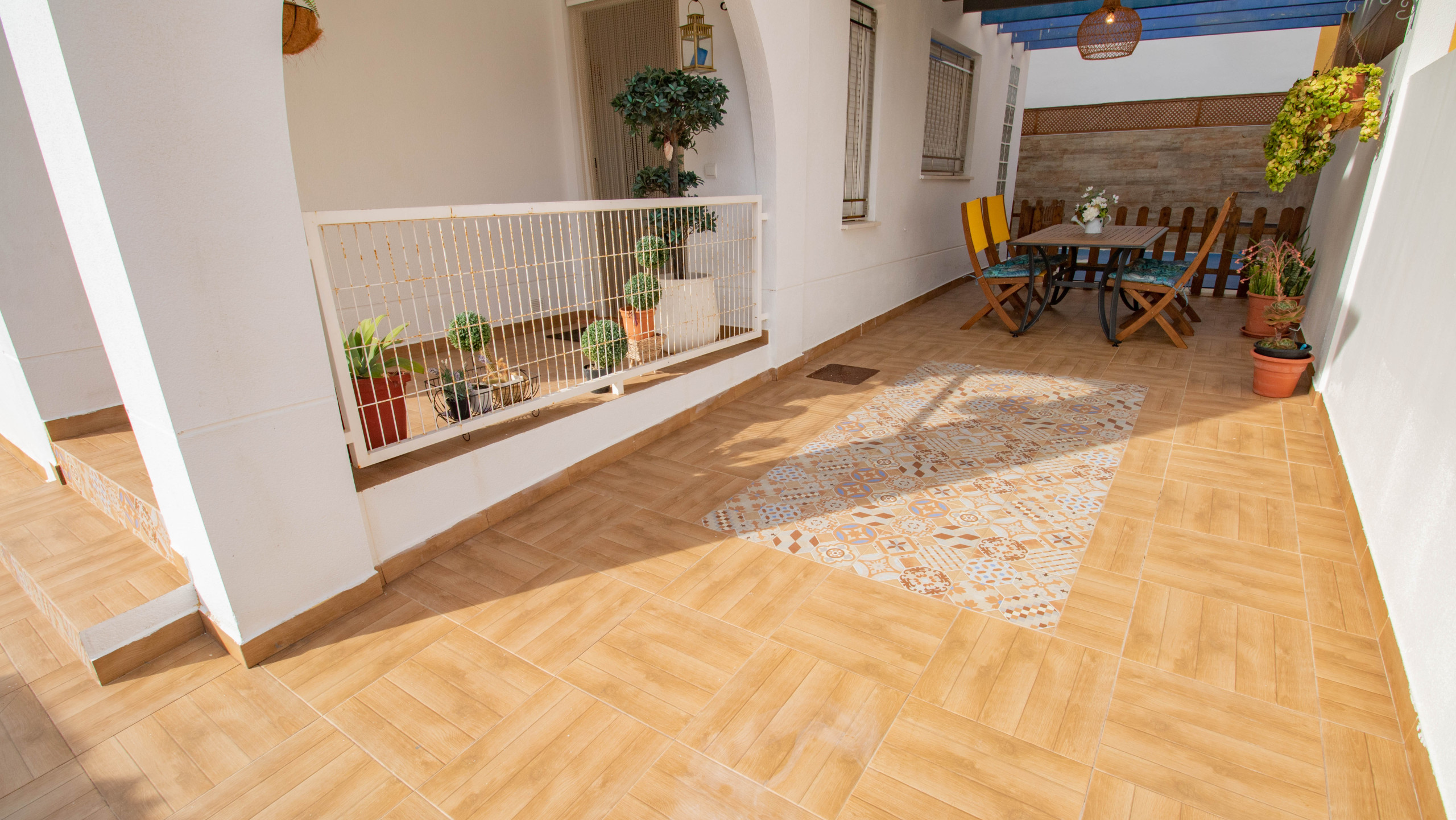 El exterior es uno de los grandes atractivos de la casa: una terraza con zona de barbacoa junto a la piscina privada, perfecta para disfrutar del buen clima de Almería durante todo el año. En la planta superior hay otra terraza y, en la parte más alta del dúplex, un amplio solárium donde relajarte, tomar el sol o contemplar el atardecer.