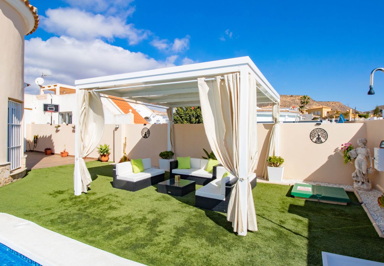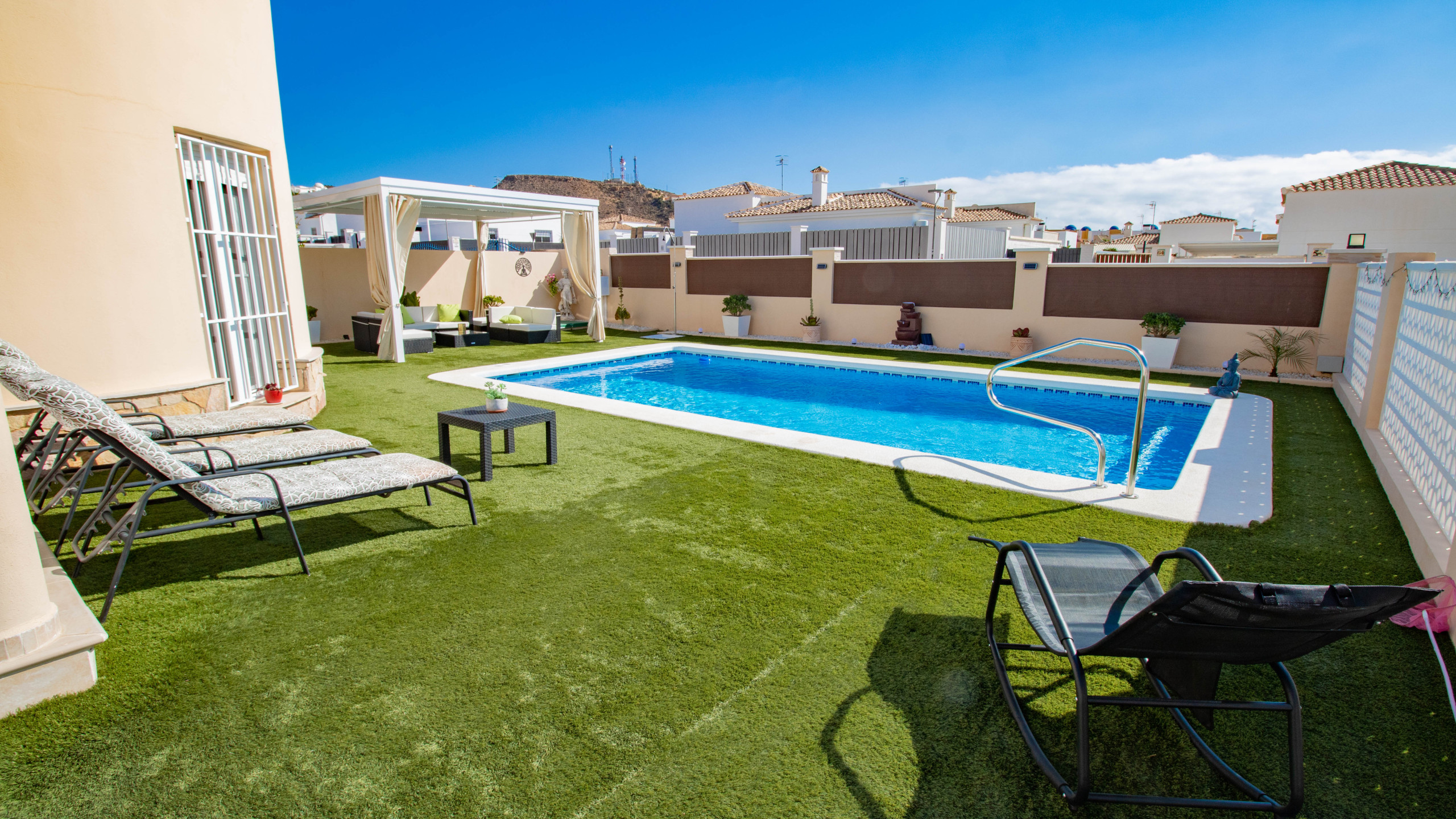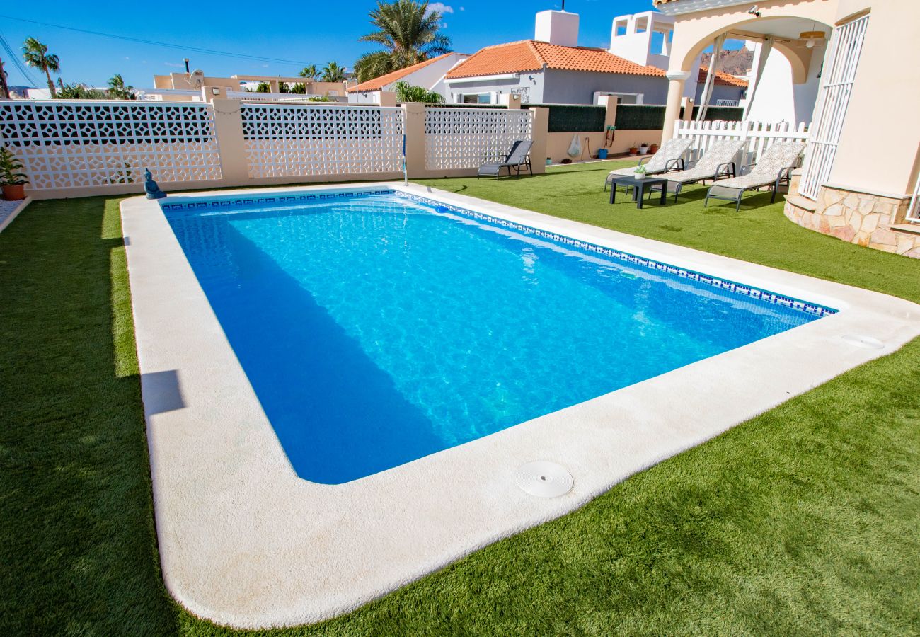 Esta encantadora villa de tres dormitorios y dos baños se encuentra en el tranquilo pueblo de San Juan de los Terreros (Almería). Diseñada para ofrecer el máximo confort, la vivienda cuenta con amplios espacios interiores, una distribución funcional y acabados de calidad. En el exterior, destaca su piscina privada, perfecta para disfrutar de un baño refrescante en total privacidad. La villa dispone también de una terraza y zona ajardinada, ideal para relajarse o compartir momentos al aire libre. Ubicada cerca de todos los servicios locales y a poca distancia de las playas.