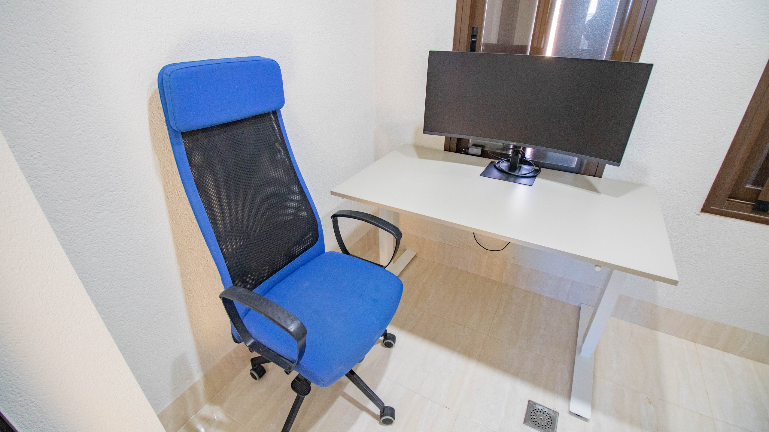 Le logement dispose d'un grand salon-salle à manger, d'une cuisine indépendante entièrement équipée et d'une pièce supplémentaire aménagée en bureau, idéale pour ceux qui ont besoin de travailler à distance pendant leur séjour.