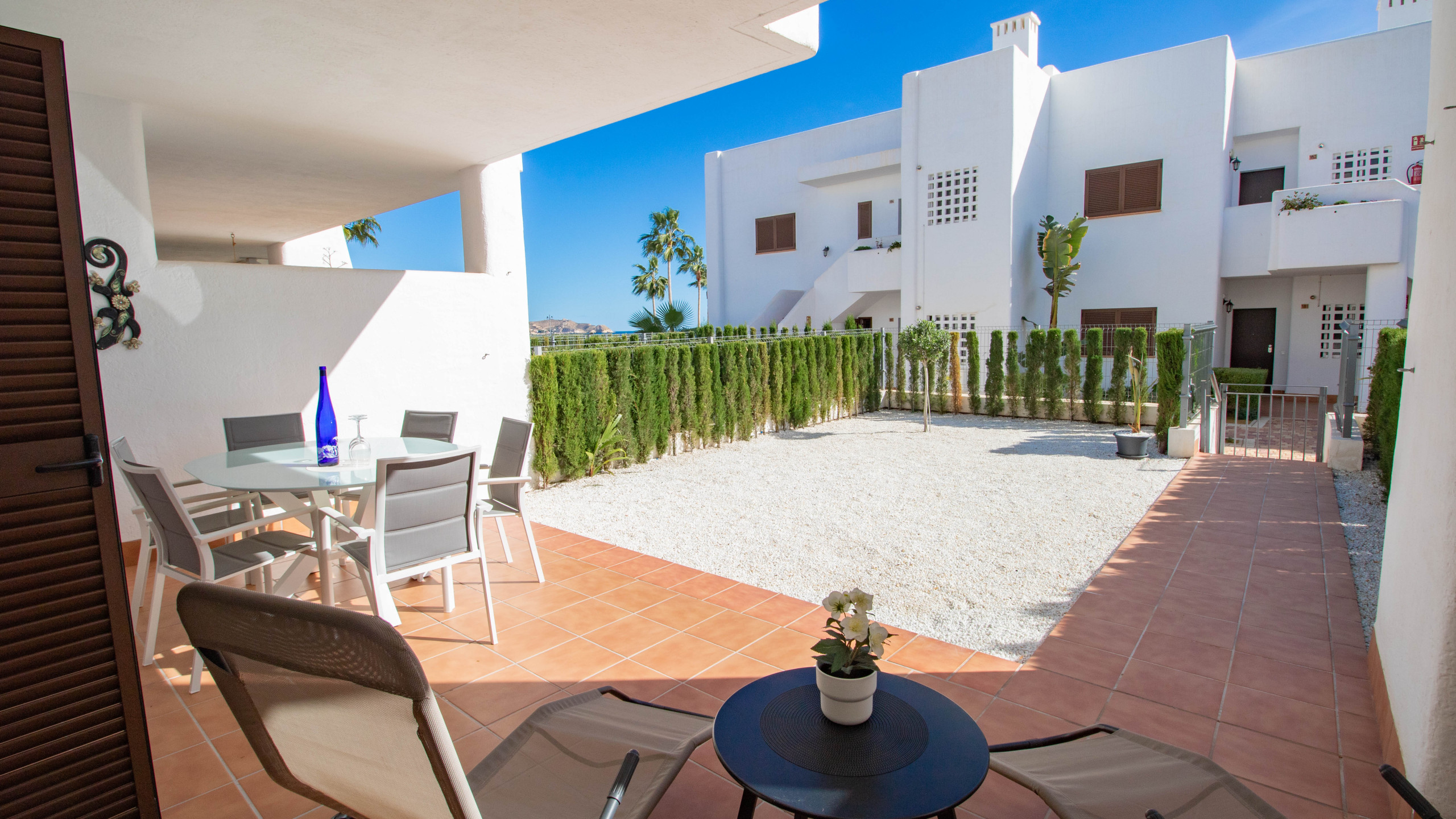 Enjoy perfect holidays in this charming ground floor apartment located in the exclusive Mar de Pulpí urbanisation, in San Juan de los Terreros (Almería).