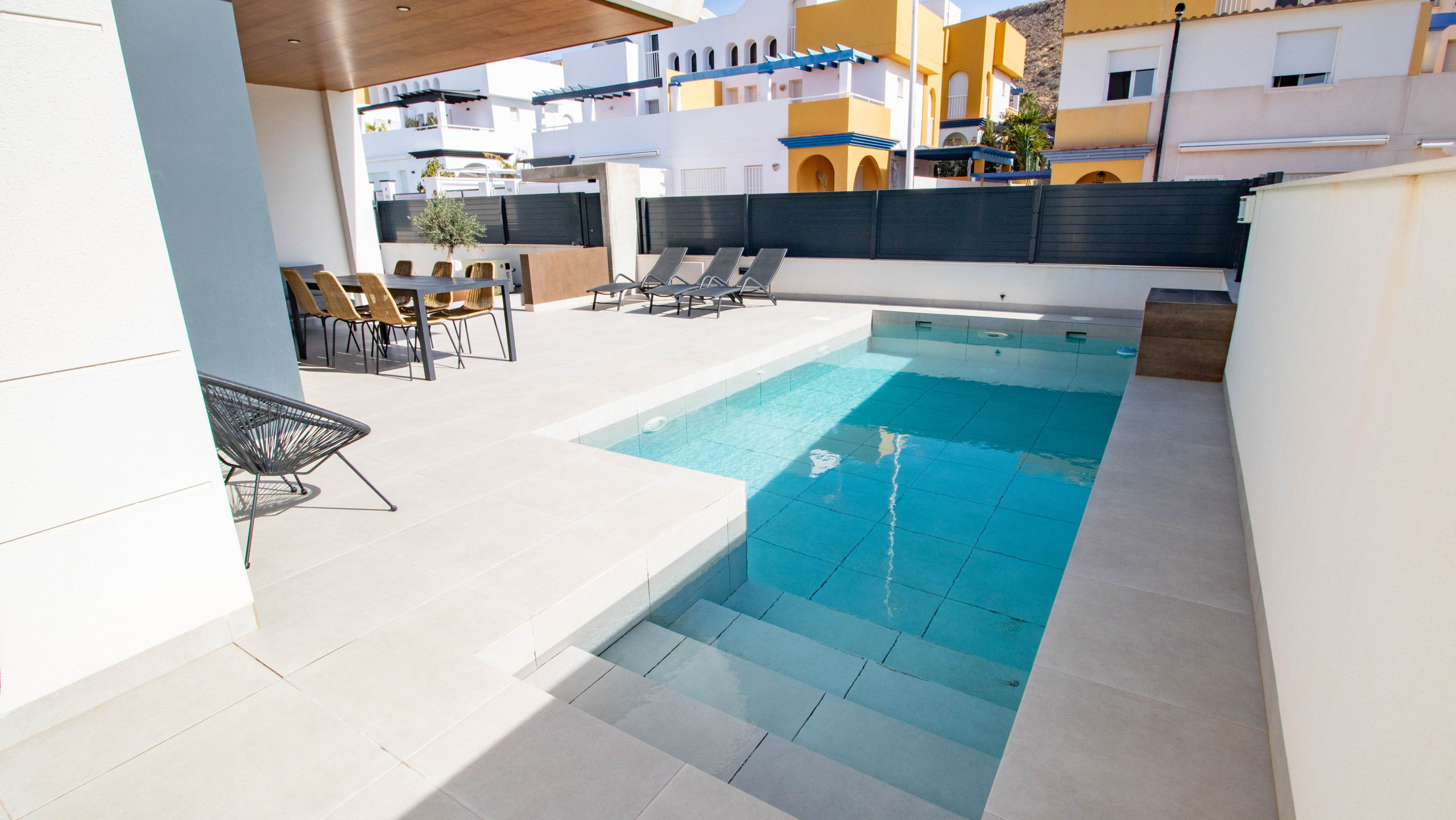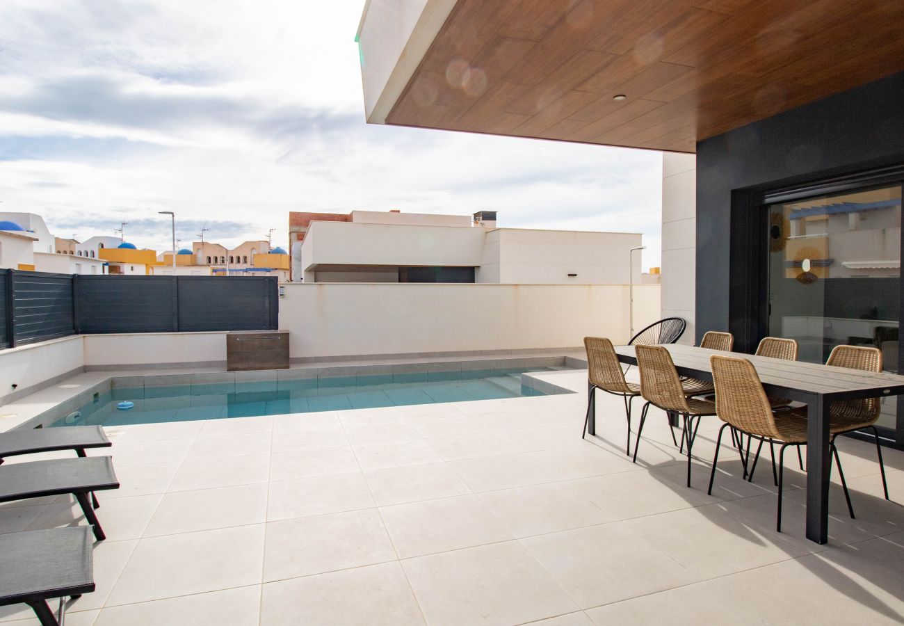 This charming three-bedroom, two-bathroom villa is located in the peaceful village of San Juan de los Terreros (Almería). Designed to offer maximum comfort, the property features spacious interiors, a functional layout, and quality finishes. Externally, it boasts a private swimming pool, perfect for enjoying a refreshing dip in total privacy. The villa also has a terrace and landscaped garden, ideal for relaxing or sharing moments outdoors. It is situated near all local amenities and a short distance from the beaches.