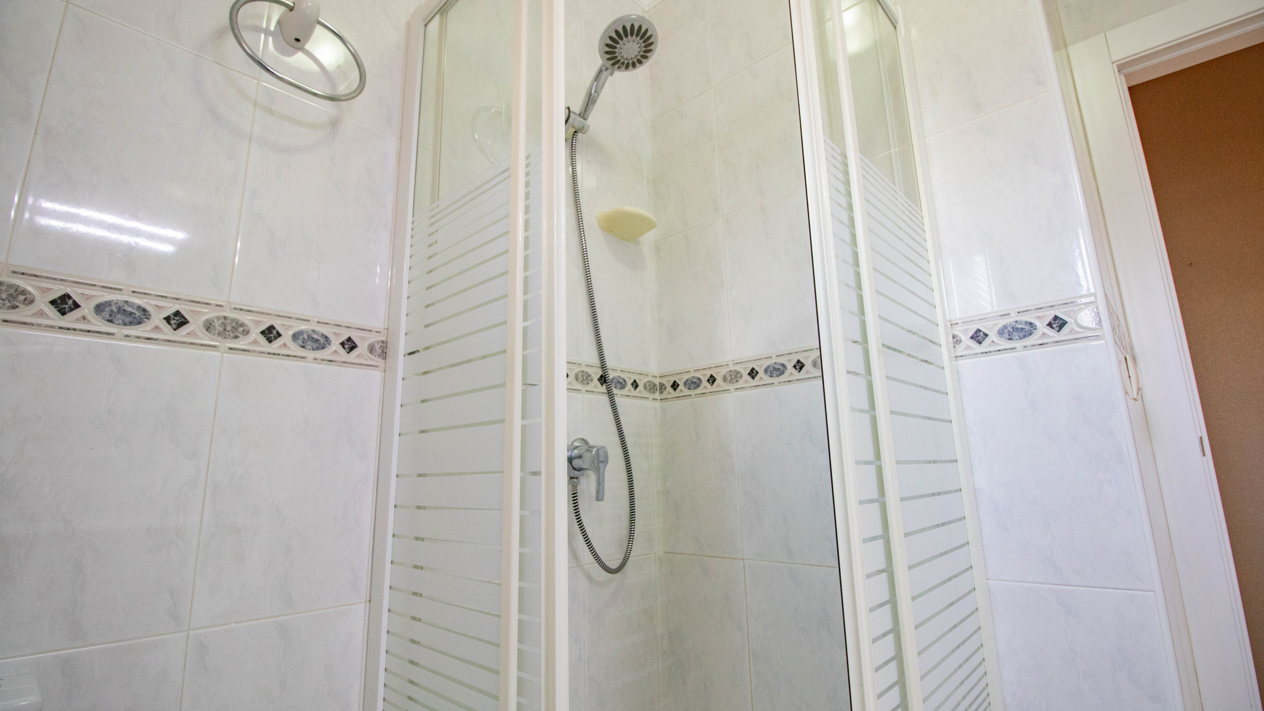 The property has three bedrooms and two full bathrooms, one of them en suite, offering space and comfort for families. It features a spacious living-dining room, a fully equipped kitchen, and a pleasant glazed outdoor area, perfect for enjoying the space throughout the year.