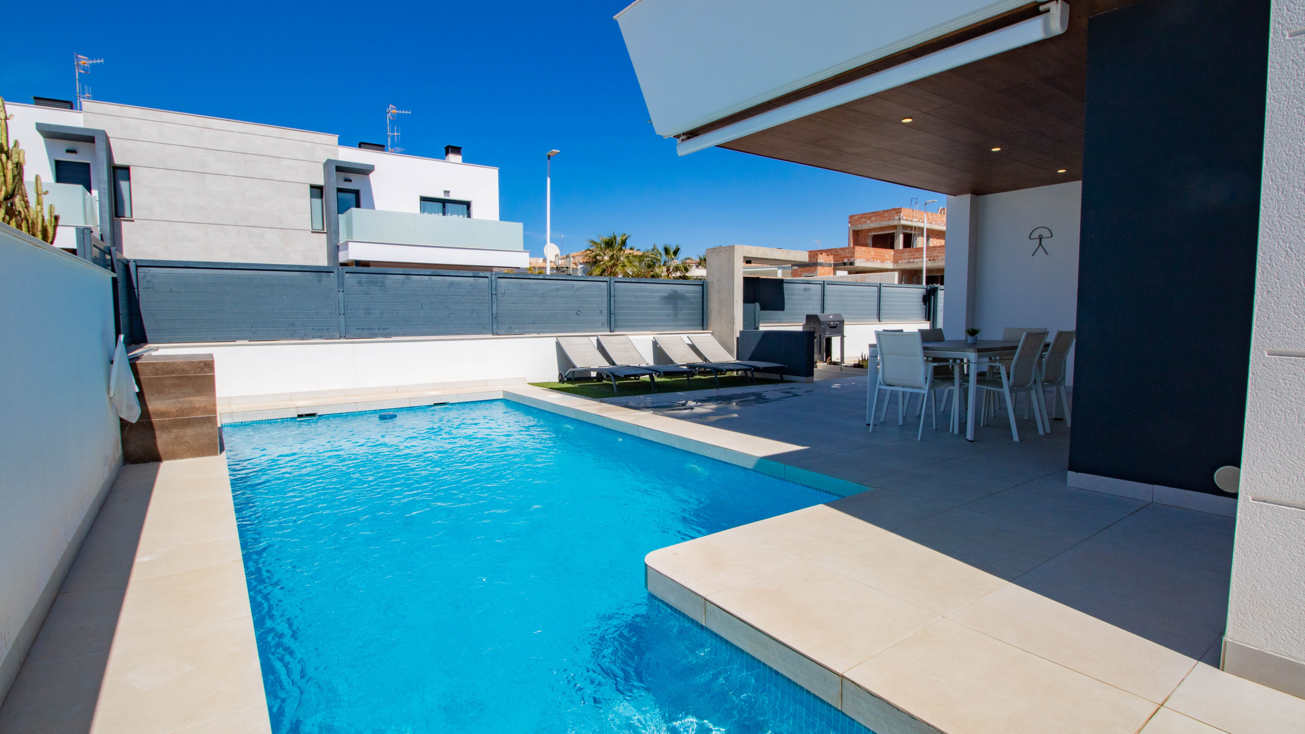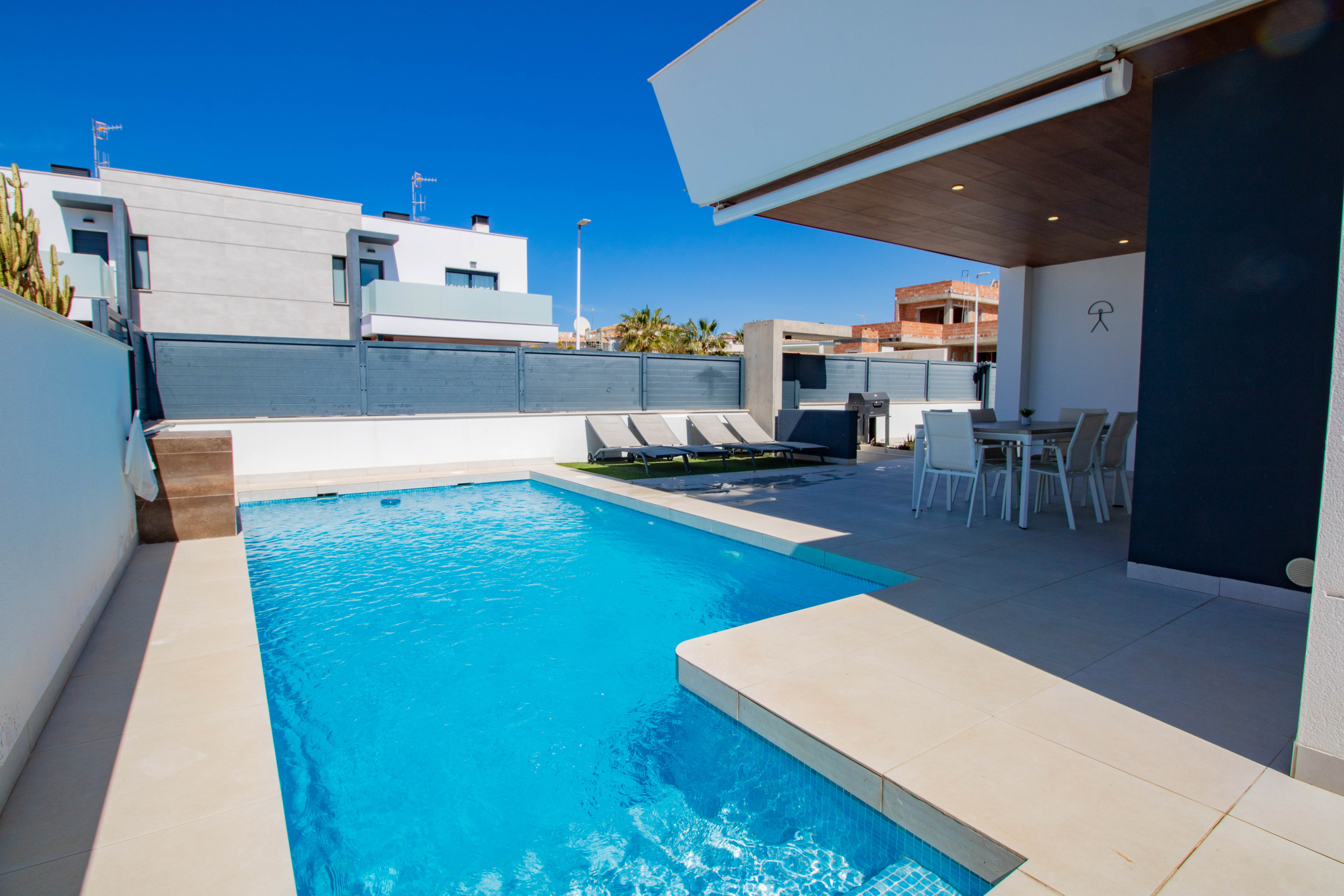 Размещение имеет зеленая зона, сад, oгороженный участок, Терраса, стиральная машина, Барбекю, Доступ в интернет (wi-fi), система отопления, систему кондиционирования во всем помещении, бассейн собственный бассейн, Открытая парковка в этом же здании, 1 телевизор.